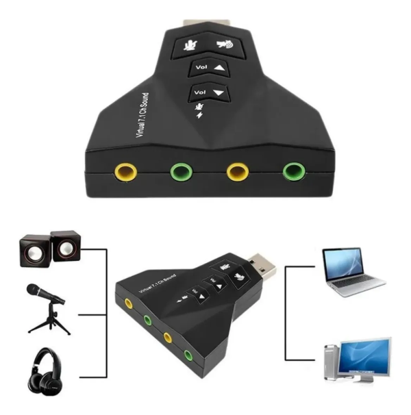 PRODUCTO: PLACA DE SONIDO USB AUDIO 3D CON DOBLE SALIDA Contiene control de volumen}