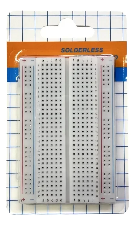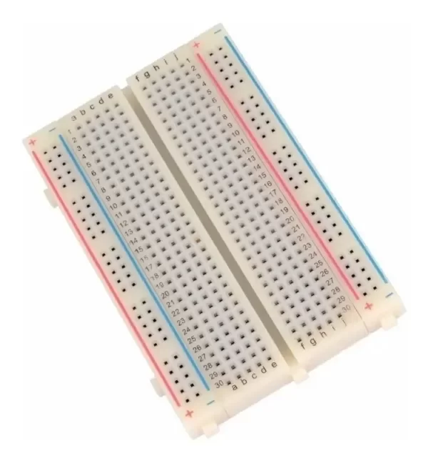 - 1 miniplaca protoboard de 400 puntos con orificios;