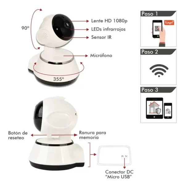 Guía rápida de inicio Paso 1: Descargue la app TUYA. Paso 2: Agregar tu/s cámara/s a la app. Paso 3: Configurar tus preferencias de notificaciones y monitorear cuando quieras desde el celular.