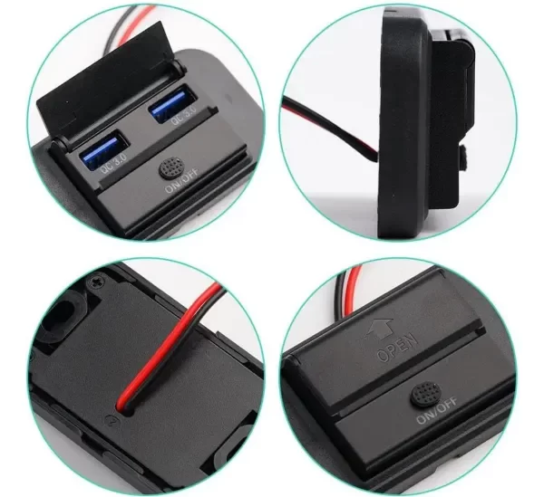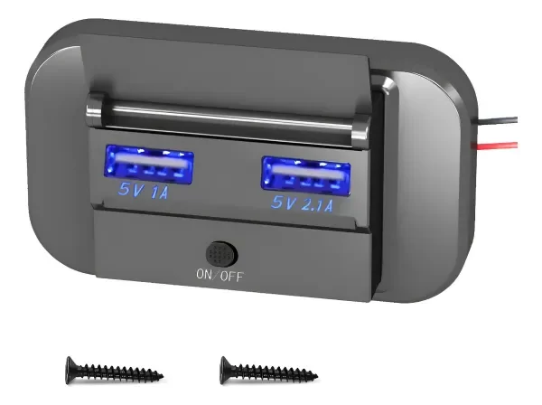 TOMA CARGADOR USB DOBLE DE APLICAR ON- OFF 12V- 24V