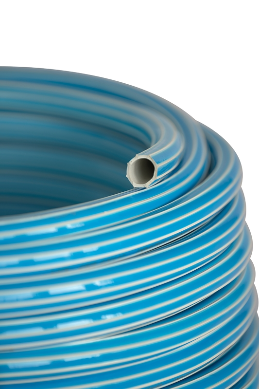 Manguera elaborada con PVC 100% virgen color blanco con bandas decorativas color celeste. Posee nervios que minimizan el desgaste y el colapsado. Gran flexibilidad y buena resistencia a los agentes atmosféricos. Ideal para uso domiciliario.