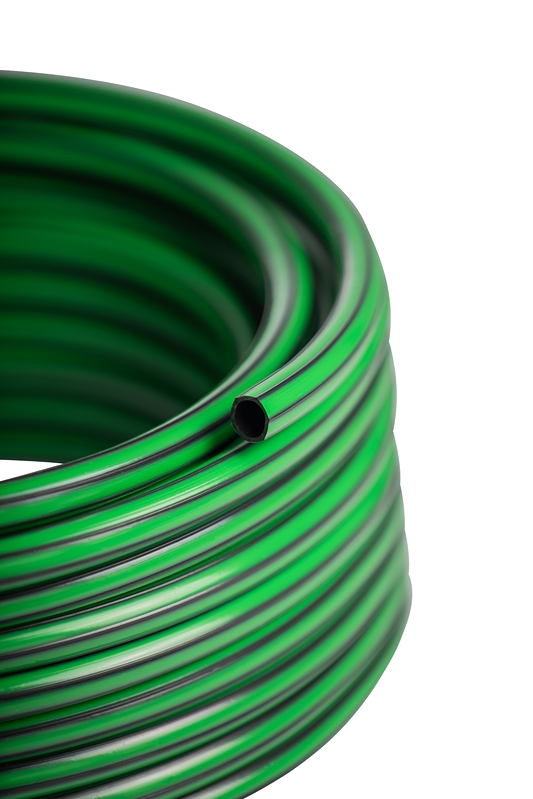 Manguera elaborada con PVC 100% virgen color negro con bandas decorativas color verde. Posee nervios que minimizan el desgaste y el colapsado. Gran flexibilidad y buena resistencia a los agentes atmosféricos. Ideal para uso domiciliario.