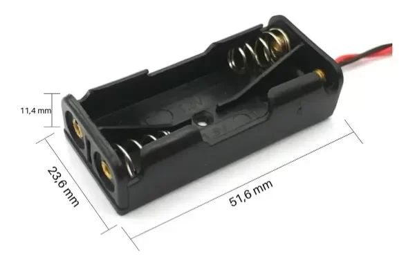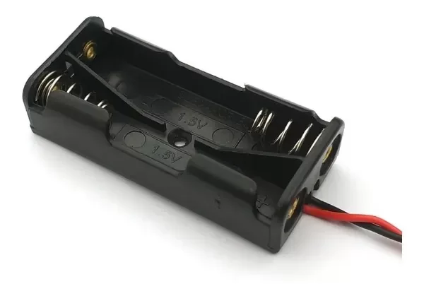 Práctico y compacto portapilas diseñado para alojar 2 baterías AAA, ideal para proyectos electrónicos, prototipos, reparaciones y aplicaciones DIY.