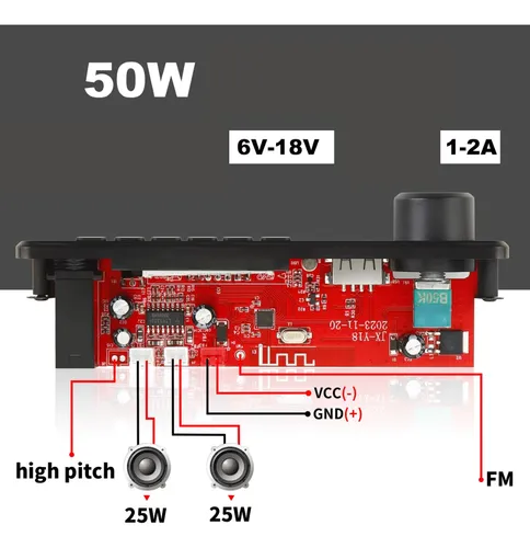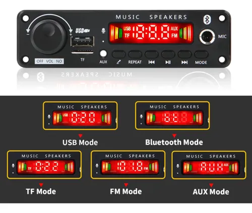 PRODUCTO: Modulo Reproductor decodificador de MP3 / Bluetooth / MICRO SD / Aux/ Carga USB 2.0 / Radio FM Con Pantalla 50W